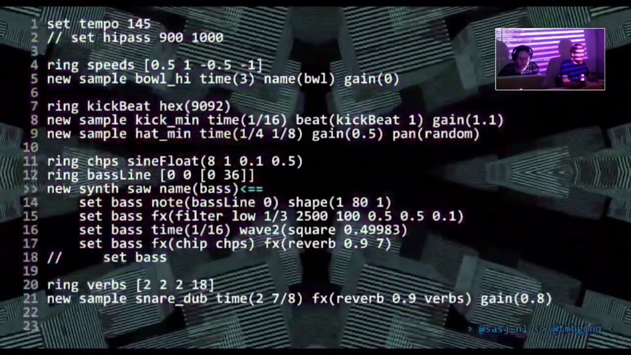 Timo Hoogland is a live coder, creative coder, music technologist and educator based in the Netherlands. He livecodes experimental electronic music and develops generative audiovisual compositions, installations and performances. Timo graduated from the Masters of Music Design at the HKU University of Arts Utrecht, where he developed the live coding environment Mercury to research and develop algorithmic composition techniques and generative visuals in live coded performances. He has an active role in organizing live coding meetups and Algoraves together with Creative Coding Utrecht, is part of the Netherlands Coding Live community and performed at various events and festivals such as ICLC, ADE, Gogbot, Tec-Art, Droidcon and React.